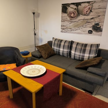 Die FeWo RHÖN-ANTIK liegt gleich am Anfang dieser schönen Ferienanlage auf der rechten Straßenseite gegenüber der Bäckerrei Vogel. Die FeWo ist aus dem ehemaligen Antiquitätenladen RHÖN-ANTIK entstanden, von dem sie auch den Namen und den Einrichtungsstil übernommenen hat. Alte Rhöner Bauernmöbel prägen das Ambiente. Ein Kaminofen sorgt für eine gemütliche Atmosphäre. In der kleinen Küche finden Sie alles was Sie zur Selbstrverpflegung benötigen: Mikrowellenherd, Kaffeemaschine, Waserkocher, Toaster, Geschirr, Besteck usw. Das neue Badezimmer ist geräumig und mit einer Dusche ausgestattet. In der gemütlichen Schlafniesche befindet sich ein Doppelbett 2,00 x 1,80 m. Holz für den Kaminofen liegt gleich um die Ecke. Auf der großen Terrasse stehen Gartenmöbel und ein Grill. Der Parkplatz befindet sich in unmittelbarer Nähe. Strom tanken für E- Autos ist möglich. WLAN ist frei! Haustiere sind nicht erlaubt.